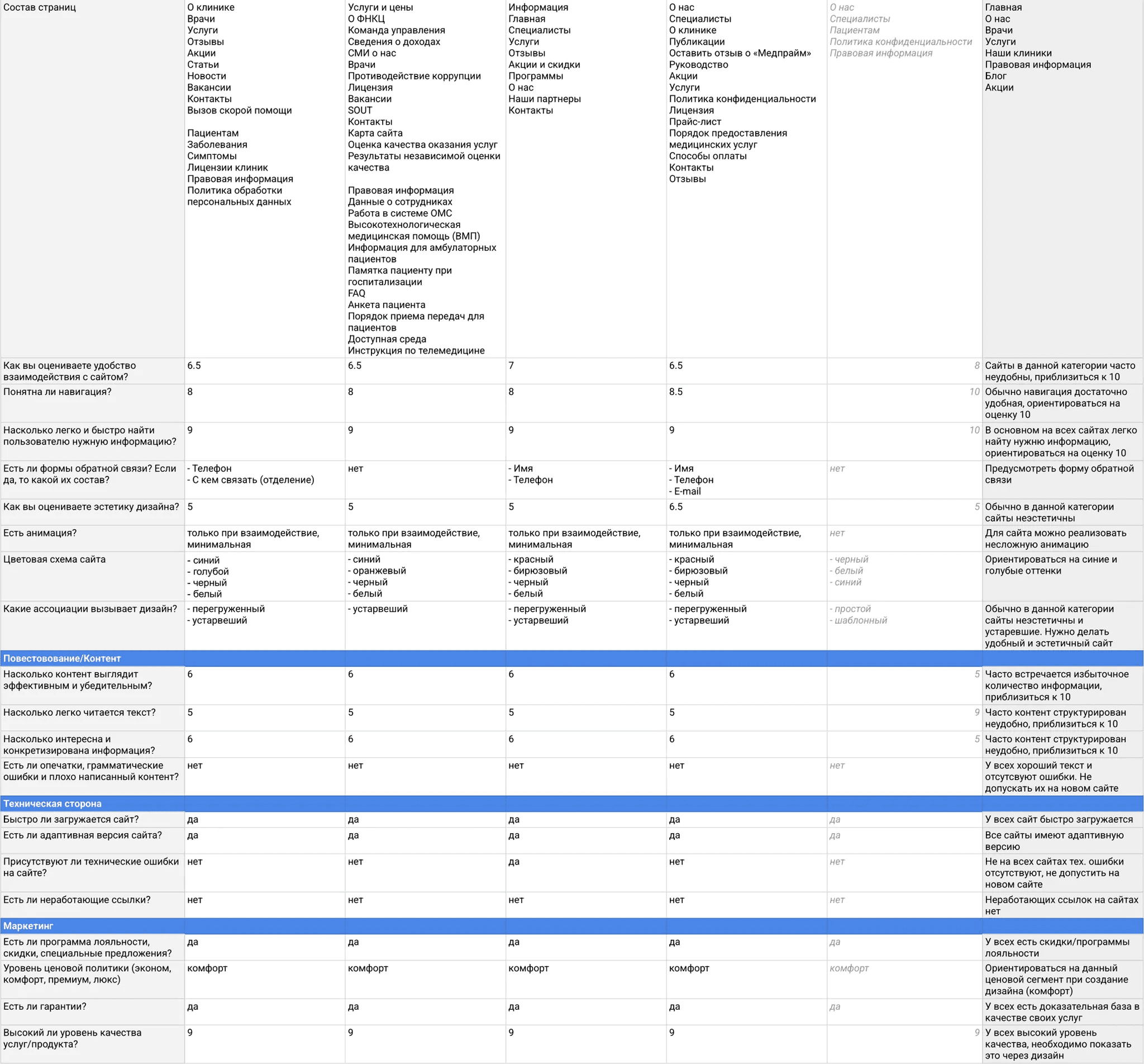 На этом этапе я фиксирую содержание каждого блока на всех страница: объем текста, количество медиа-контента и так далее.