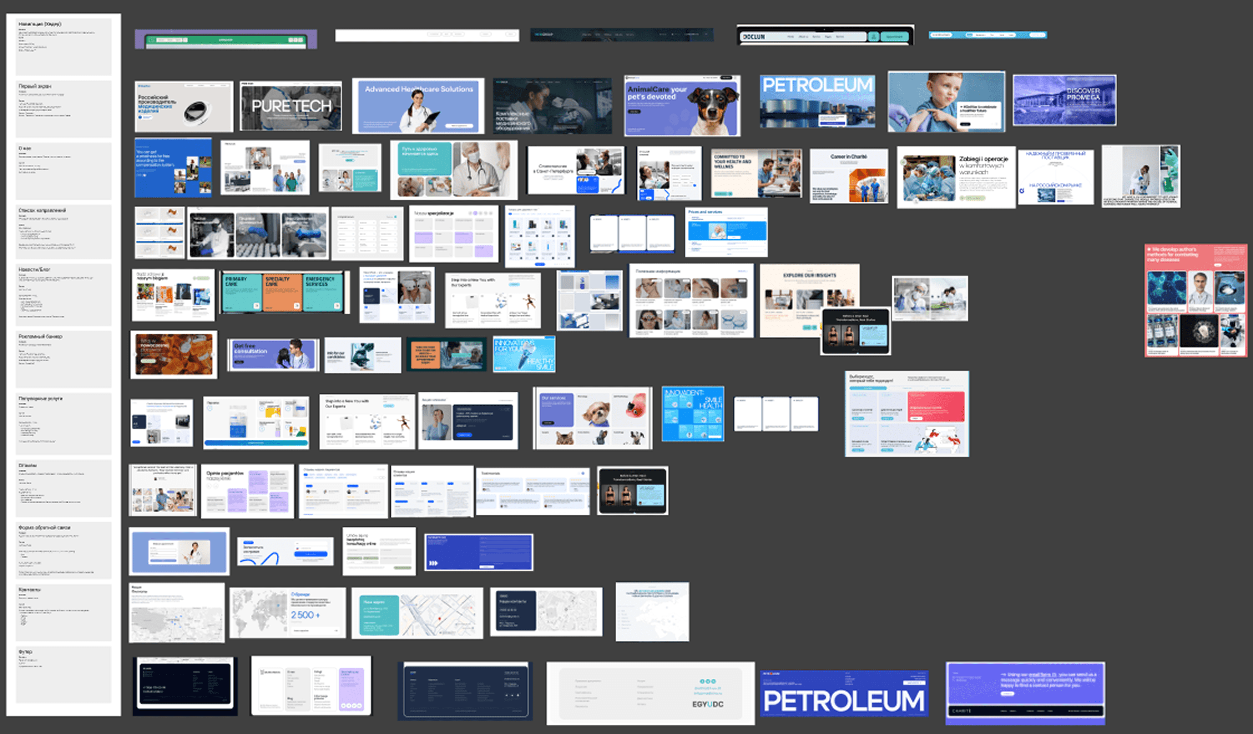 Также параллельно собирал скриншоты ключевых страниц с сайтов конкурентов, чтобы понять, насколько эстетичен типичный сайт в этой области, и учесть их ошибки.